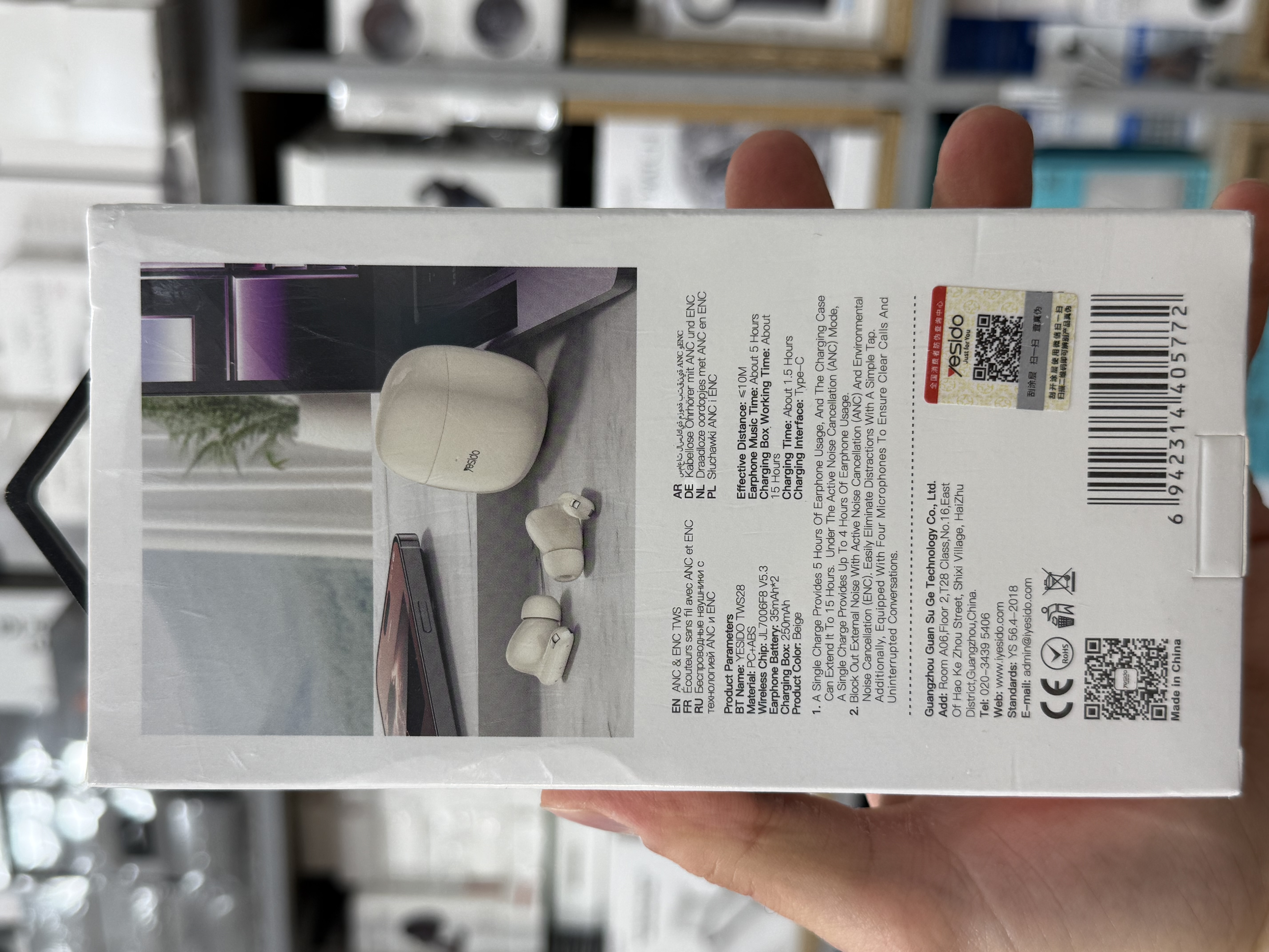 ایر پاد برند یسیدو مدل TWS28 رنگ سفید قابلیت نویز گیر صدا ANC .ENC ورژن 5.3 ظرفیت باتری 250میلی امپر مدت زمان شارژر دهی 15ساعت