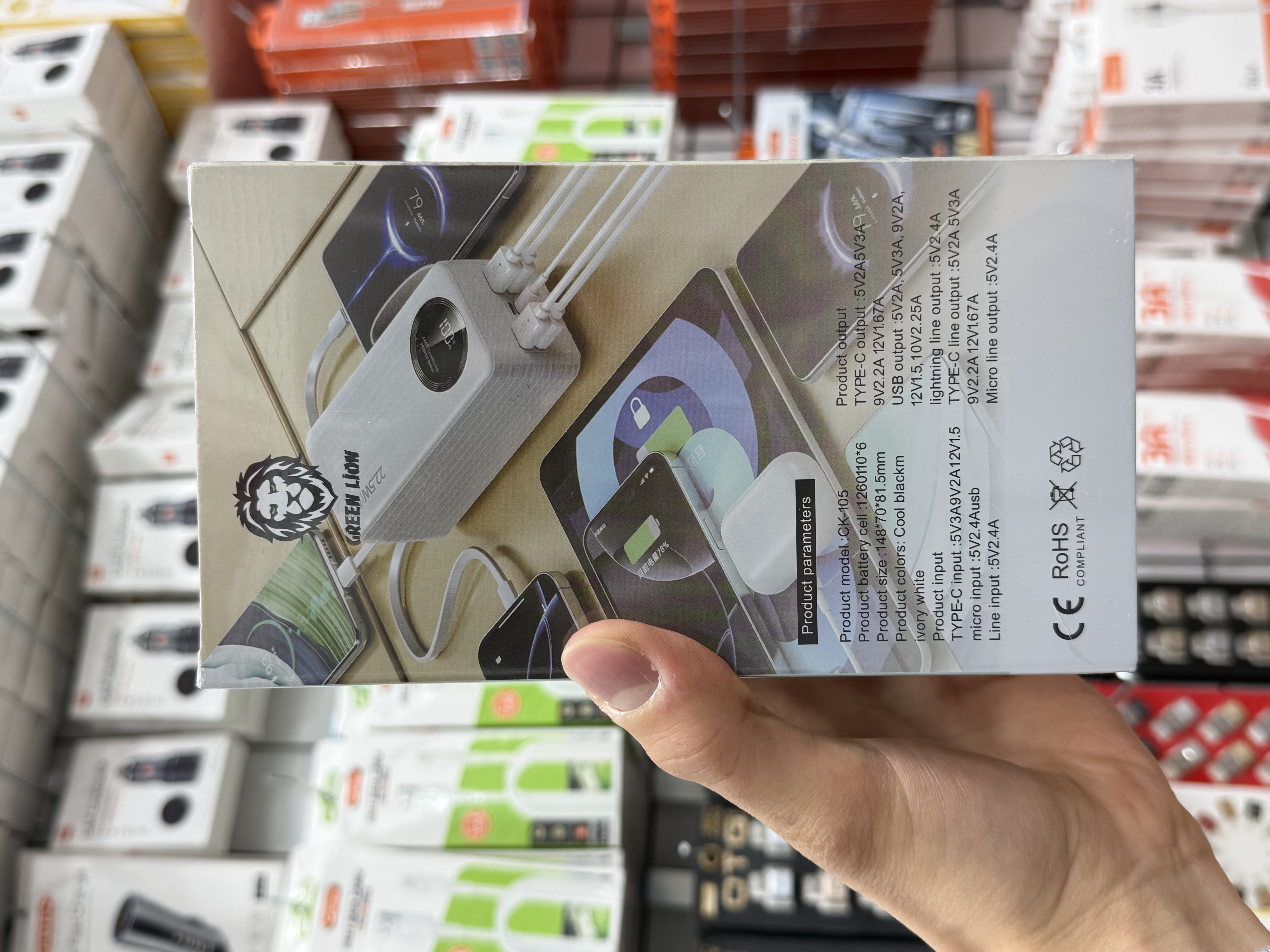 🔘 پاوربانک اورجینال برند گرین لاین ❇GREEN LION 🟢Model: CK-105 🔋50,000 mAh ⭕️SCP: 22.5W / PD: 20W ⭕️دارای چهار کابل متصل فست ⭕️صفحه نمایش دیجیتال ⭕️پورت یو اس بی+ پی دی ⭕️Fast Charge